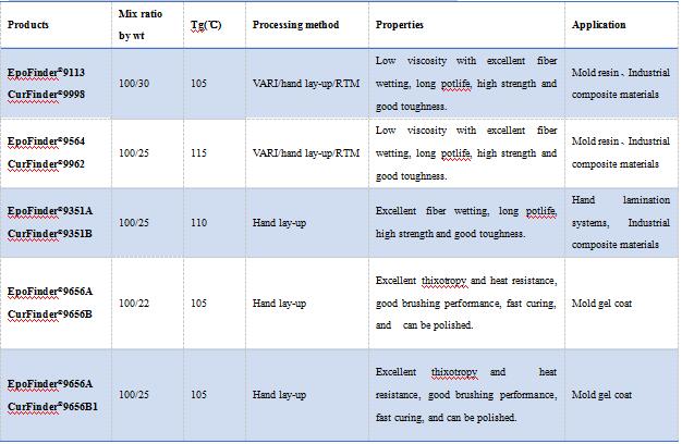 This systems containsmold fillingresin, hand paste, get-coat and can be combined used. It has excellent mechanical properities and heat-resistance, suitable for mold manufacturing and industrial composites.