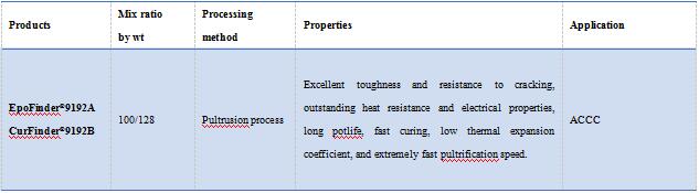 The epoxy system mateaial iming at the pultrusion process, having non-volatile components. By the unique advanced technology, it has excellent toughness and heat-resistance simultaneously.The system also satisfy the requires of high pultrusion speed and high glass transition temperature.