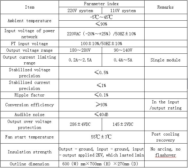 Main technical parameters