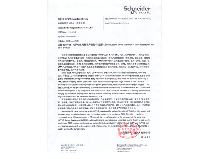 施耐德電纜頭及3T使用證明